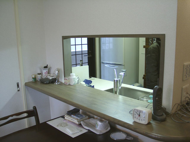 | 以前のキッチンは部屋で仕切られ、小窓に小さなカウンターがつく、一時期流行ったタイプです。 |