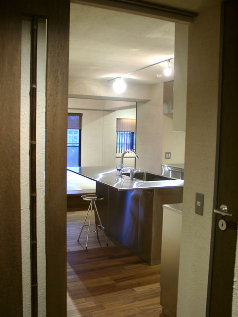 | ステンレスは黒竹が生える土を。引戸の板面は竹林をイメージしています。 |